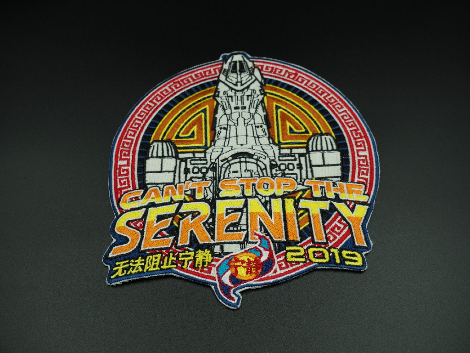 These Can't Stop the Serenity Embroidered patches are 5.5" tall by 6" wide and feature the 2019 logo.